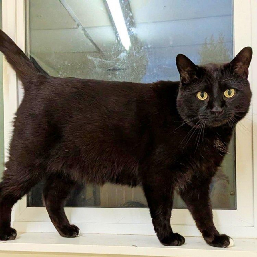 Morgan is such a handsome boy! He is an incredibly smooth black cat with sprinkles of white throughout his fur...