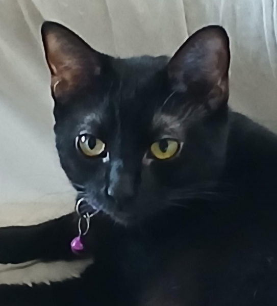 7 months old female black domestic short hair, house, litter box trained. Gets along with other cats but very shy...