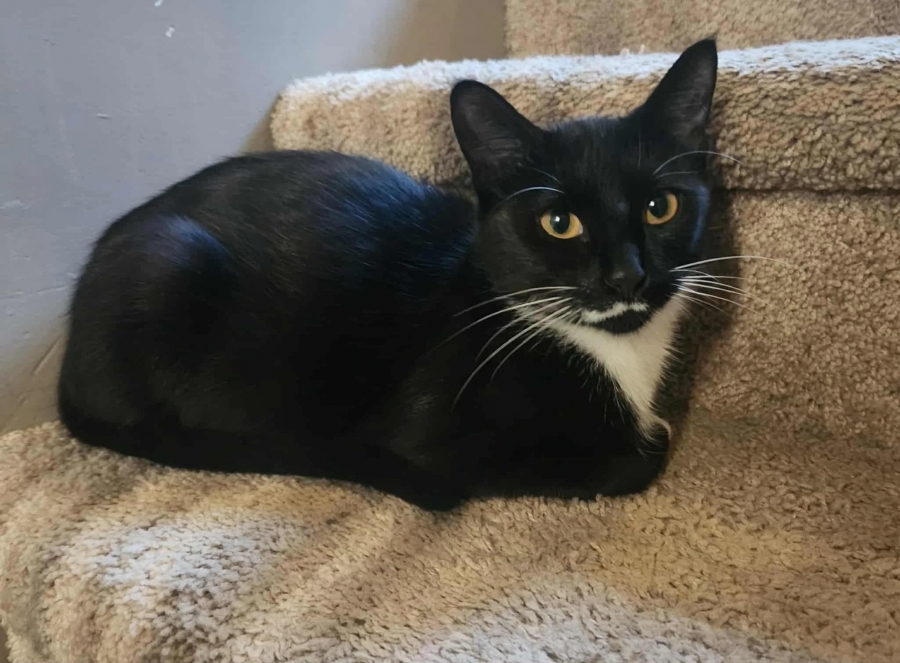 Radiant is a lovely, affectionate tuxedo cat with an adorable little mustache.